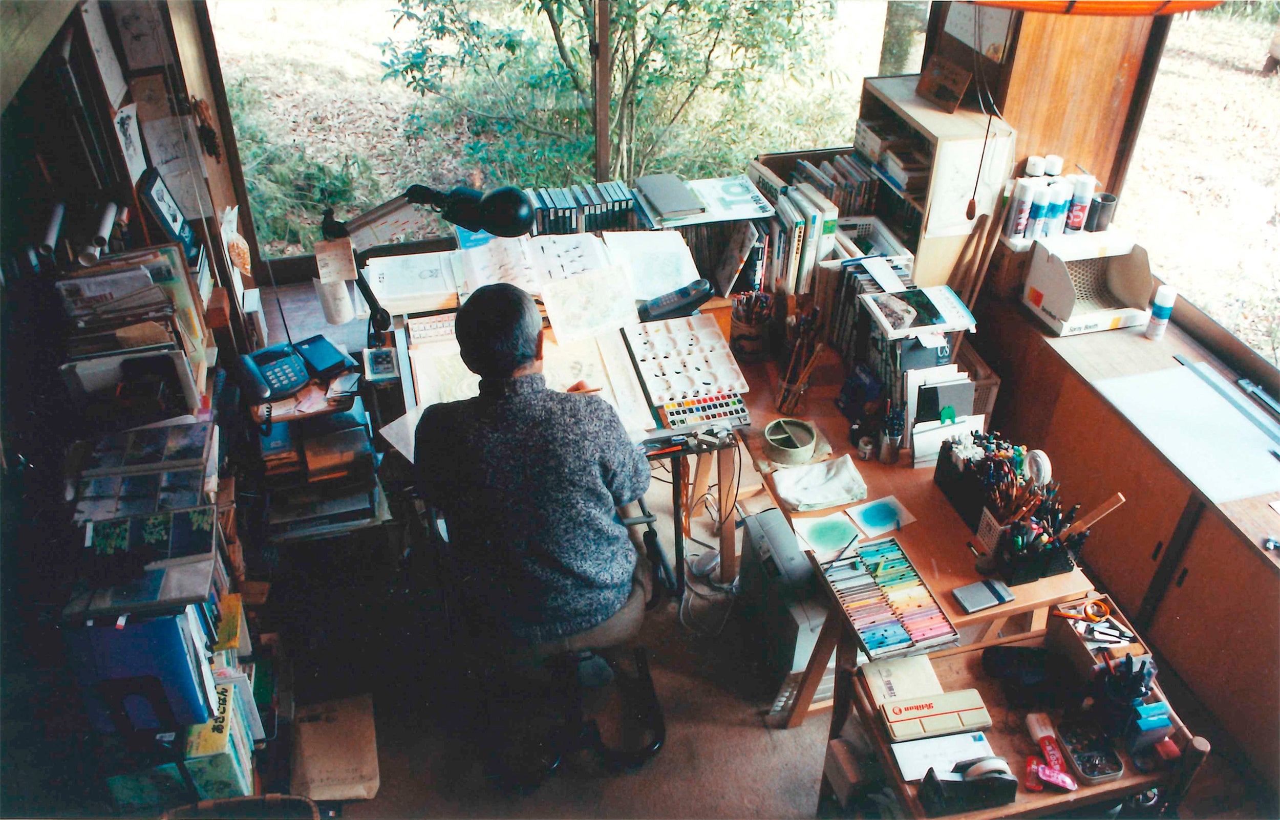 「14ひきのシリーズ」の発想は、私たち家族の「ひっこし」からはじまりました。1970年、私が移り住んだのは東京、多摩丘陵の公団住宅でした。31歳の時です。周辺には雑木林や農家など田園風景があちこちに残っていました。雑木林との再会は私の心にしまわれていた原風景を呼び覚ましました。