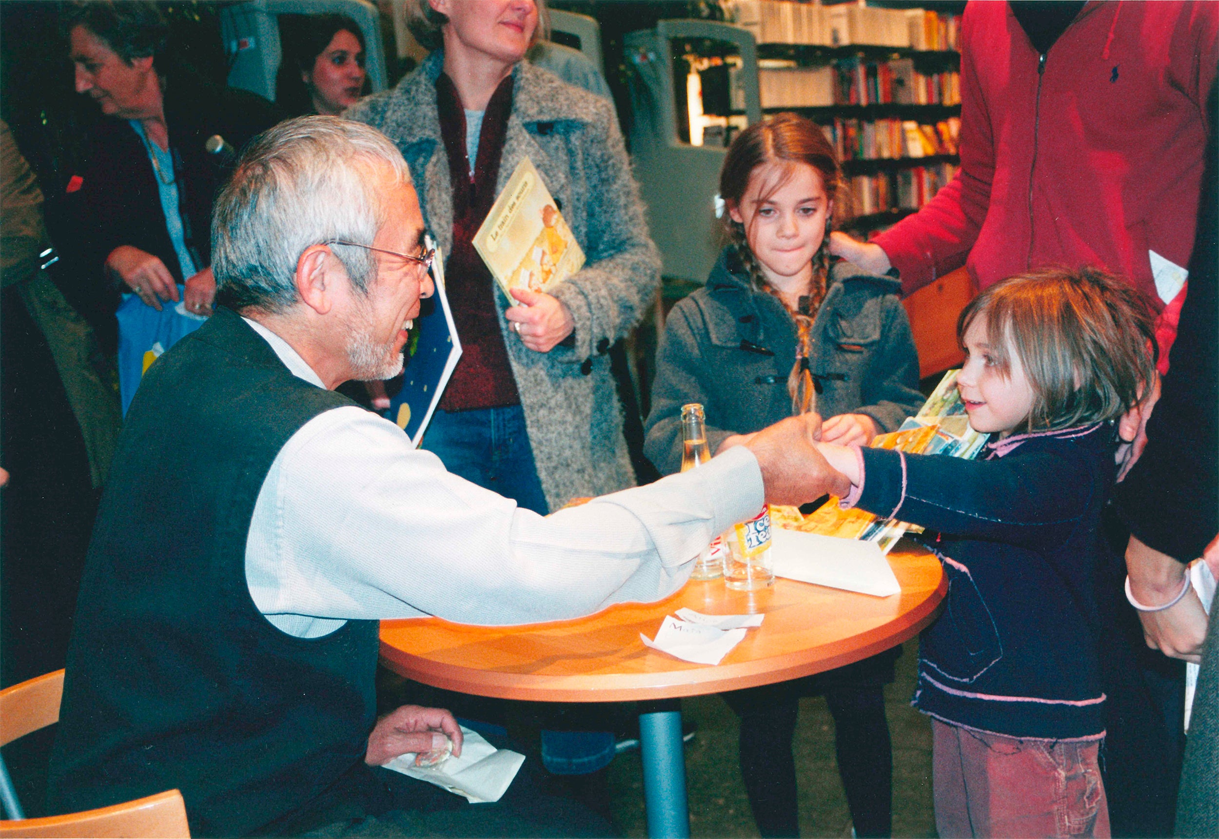 2003年、フランス・モントルイユで行われたブックフェア会場でのサイン会の様子 (いわむらかずお絵本の丘美術館 提供)