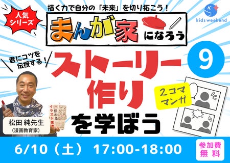 イラストを使って思考やビジョンを見える化する「イラスト思考」の開発者で、まんが教育家として知られる松田純先生による授業『まんが家になろう』は、1年間12回にわたって開講中です。オリジナルのキャラクターを考え完成させていく第1章、それぞれ役割の異なる複数のキャラクターを生み出していく第2章。6月からは第3章に入り、いよいよストーリーを作っていきます。なお、授業はアーカイブ視聴ができるので、途中からでも楽しく参加することができます。
