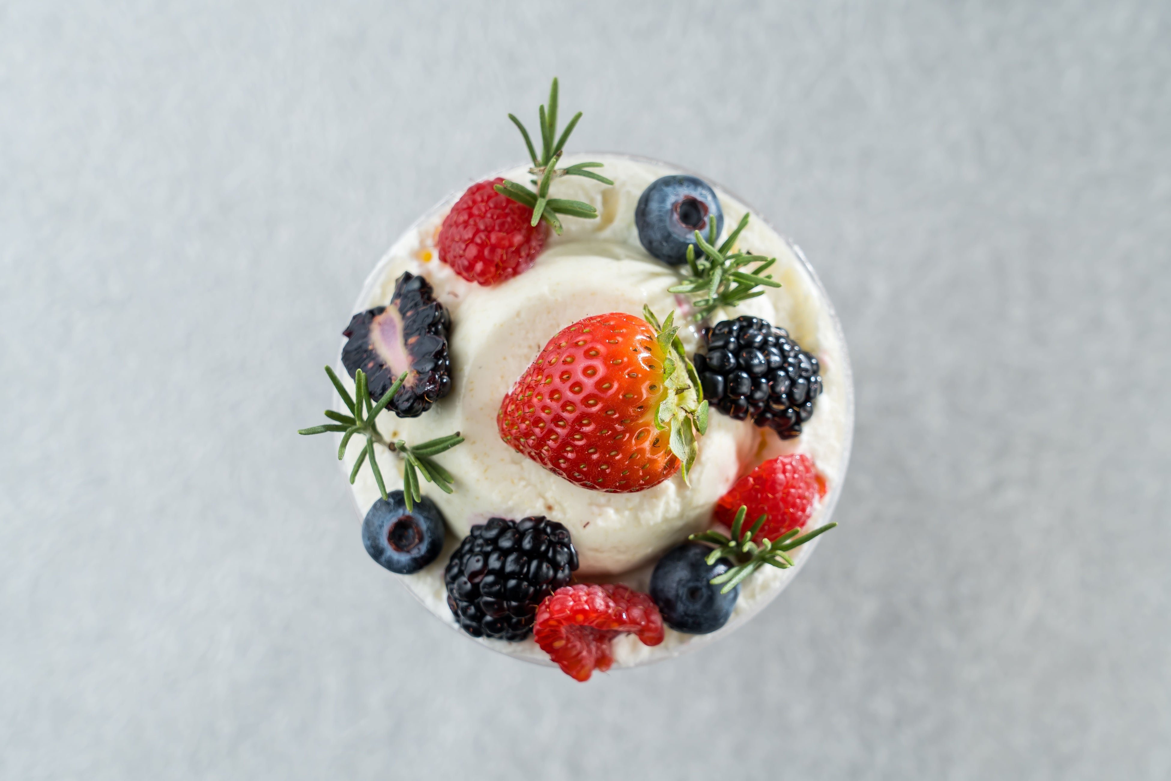 【構成】フランボワーズ/ブラックベリー/ブルーベリー/苺/ローズマリー/キルシュシャンティー/抹茶/クランブル/抹茶ゼリー/ミルクアイス/抹茶アイス/カカオニブ/抹茶生地/フランボワーズソース