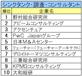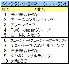 ◆シンクタンク・調査・コンサルタント業界TOP10◆