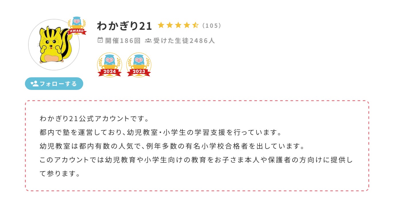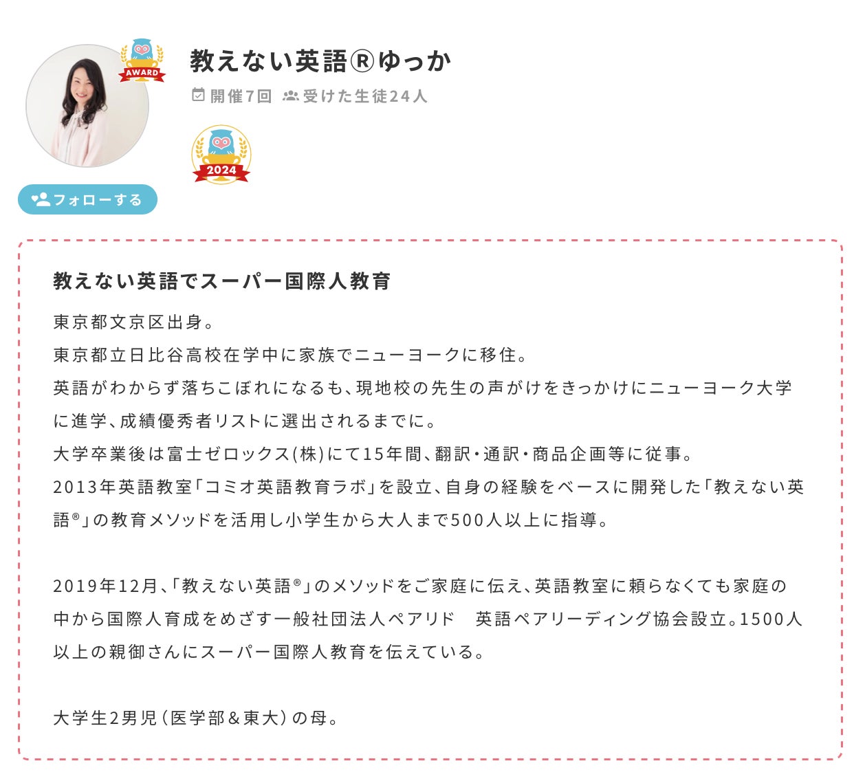 【プロフィールフォロー数が多い先生部門 優秀賞】