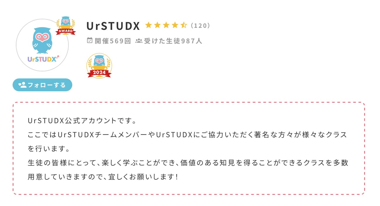 UrSTUDXのアカウントでは、プログラミングや就職支援、小学校受験に関連したオンラインクラスを開催しています。
