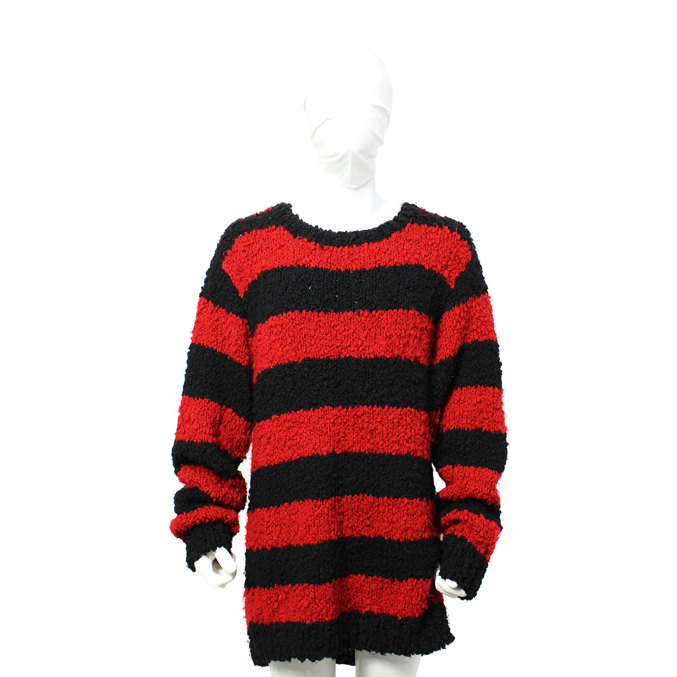 90年代初期に世界的人気を誇ったロックバンド「ニルヴァーナ」のボーカリスト、カート・コバーンからインスピレーションを受けたカート期のアイテム。ベルベット素材を使用したアイテムや穴の空いたデニム、大ぶりのサングラスなどロックにインスパイアされた印象的なコレクションが立ち並ぶ中でも、こちらのボーダーニットはシーズンを象徴するアーカイブとなっております。