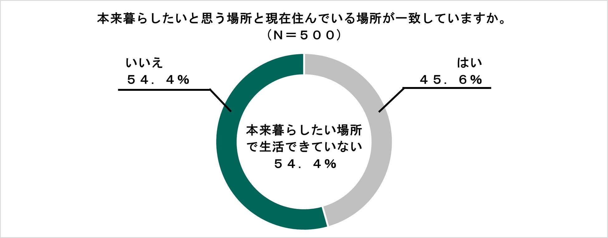 「暮らしたい場所と現在住んでいる場所が一致しているか」と質問したところ、54.4%が「いいえ」と答えました。