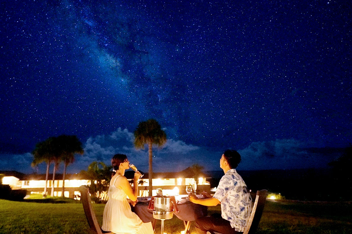 ゆったりとした南国の雰囲気を感じるロケーションで刻一刻と変わりゆく空、頭上に広がる世界有数の満天の星を眺めながら、沖縄の恵みをご堪能ください。