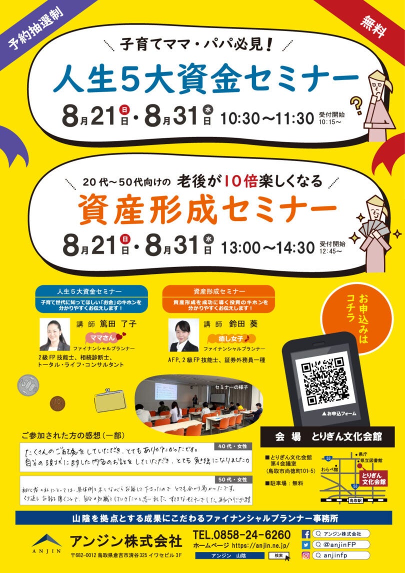 ・「人生5大資金セミナー」家庭でできる資産形成のコツが分かる