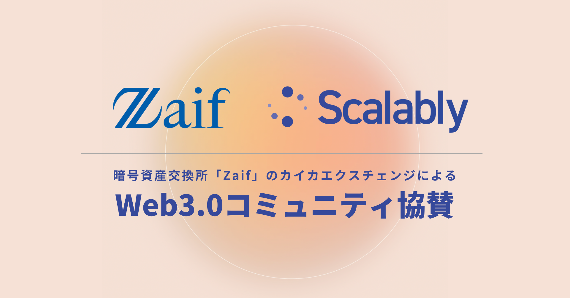 暗号資産交換所「Zaif」を運営する株式会社カイカエクスチェンジ(東京都港区、代表取締役社長:鈴木 伸)は、Scalably株式会社(東京都港区、代表取締役:山本 純矢、以下「スケーラブリー」)のWeb3.0コミュニティ活動への協賛を発表しました。スケーラブリーは今後、多くの人にとってWeb3.0の社会進化に触れるきっかけを作り、国境を超えてコミュニティ拡大を推進します。