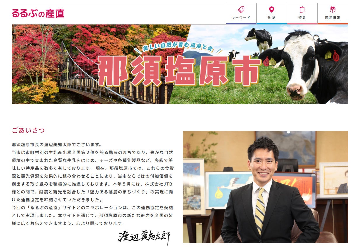 JTBショッピング「るるぶの産直」に那須塩原市特集ページを開設