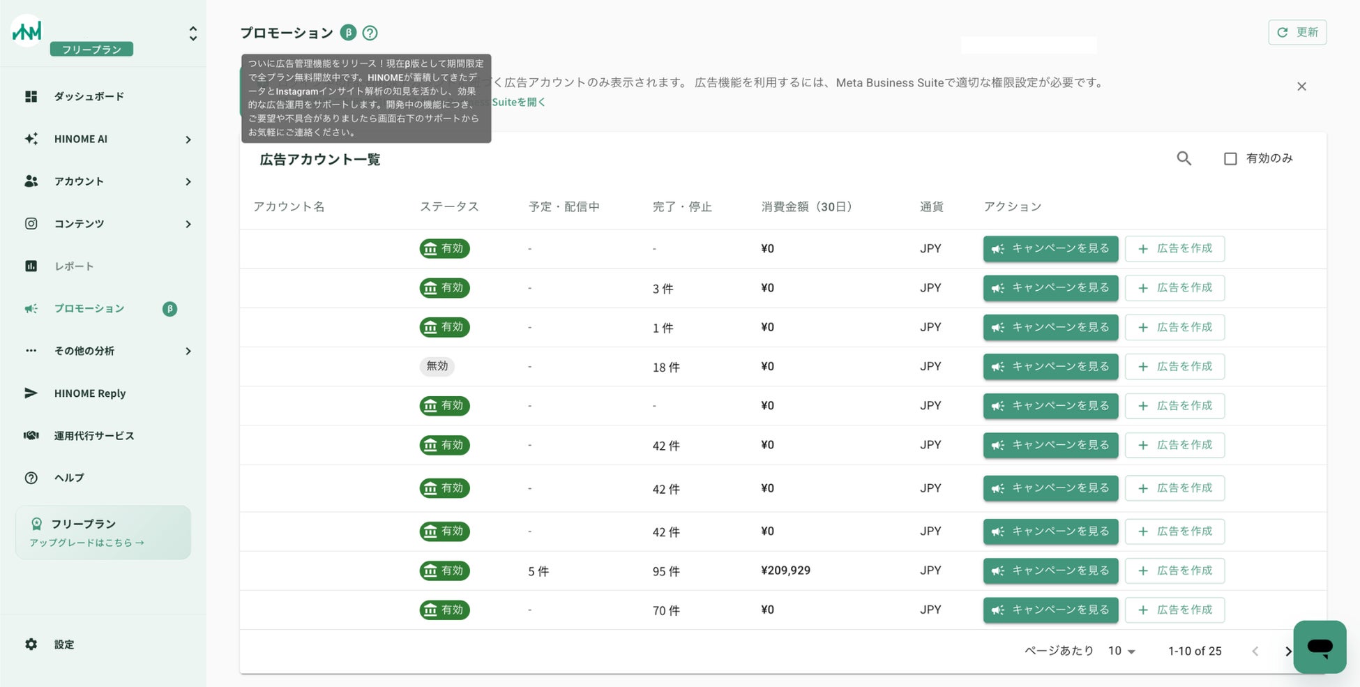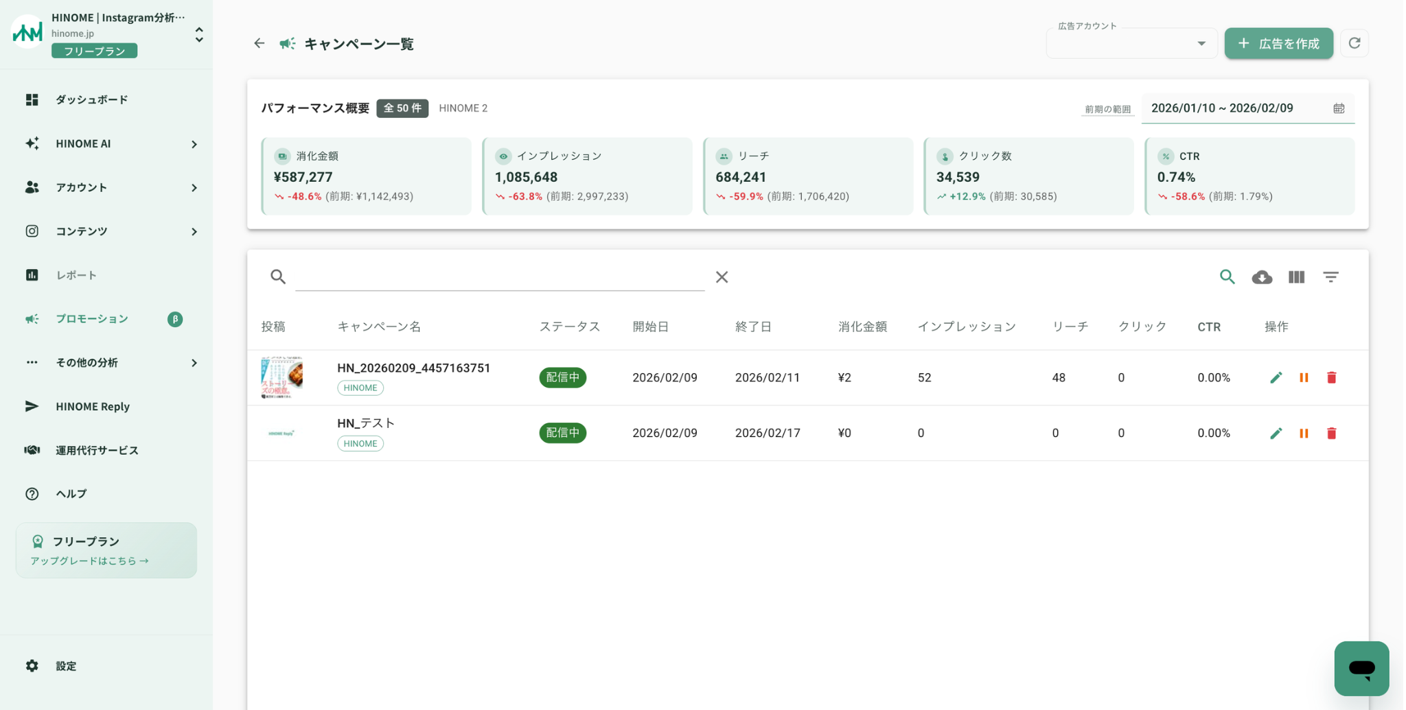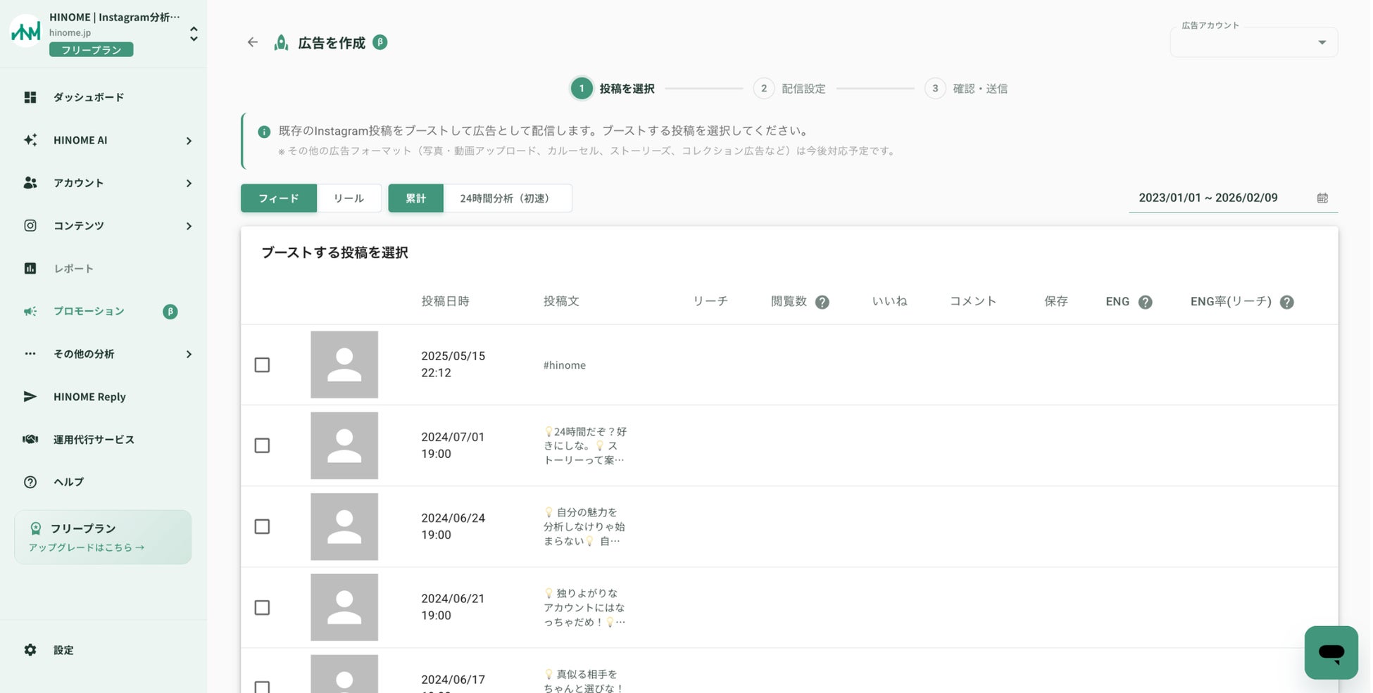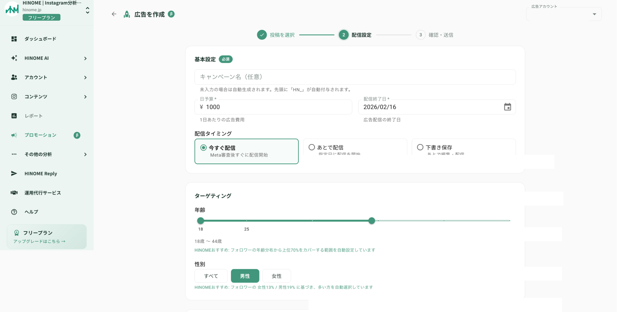 【β版リリース】Instagram分析『HINOME』、Meta広告出稿まで完結する新機能を2月10日より提供開始。リリース記念で2月末まで全プランで利用可能。 〜リリース記念で特別プランもご用意〜