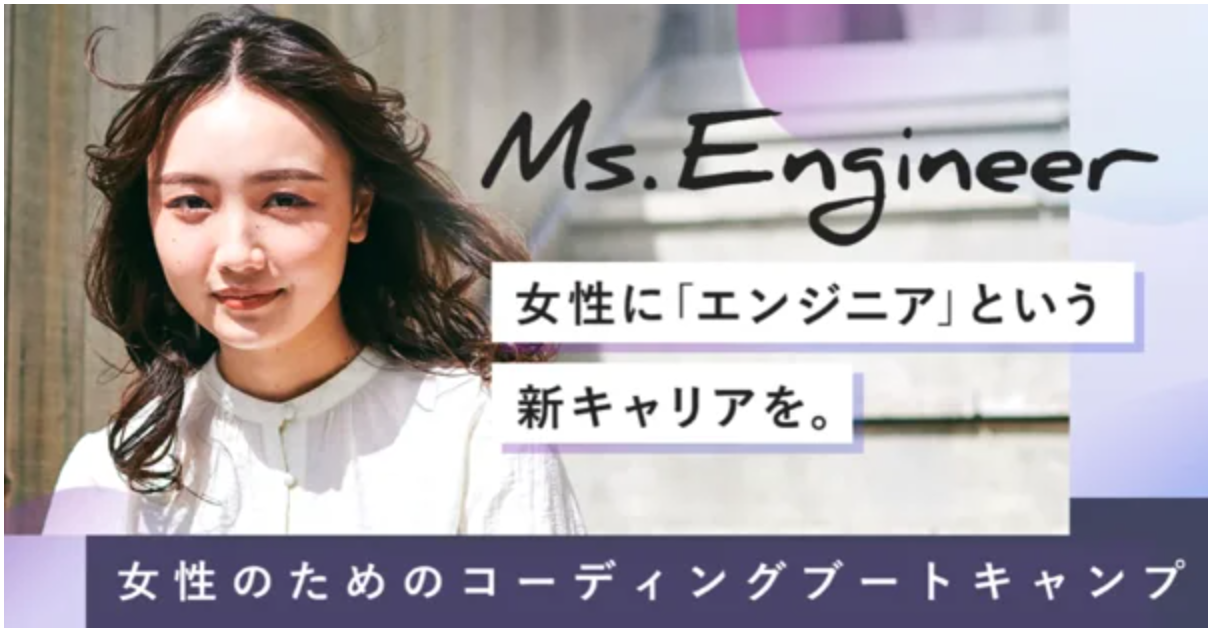 Ms.Engineerは「未来の担い手となるテクノロジースキルを持った女性」を輩出することを目的とした女性のためのエンジニア養成ブートキャンプを運営しています。経済産業省「リスキリングを通じたキャリアアップ支援事業」に採択され、日本を代表する大手IT企業のCTO陣がカリキュラムを監修し、フルオンラインながら「ブートキャンプ式」と呼ばれる超実践型の厳しいカリキュラムで、未経験から最短6ヶ月でハイクラスのエンジニアになることができます。累計受講者数は500名以上で、卒業後は、有名メガベンチャー複数社へエンジニア職での内定獲得、なかには転職後の年収が100万円以上あがるケースもあり、意志ある女性の人生を変える実績が着実に積まれています。