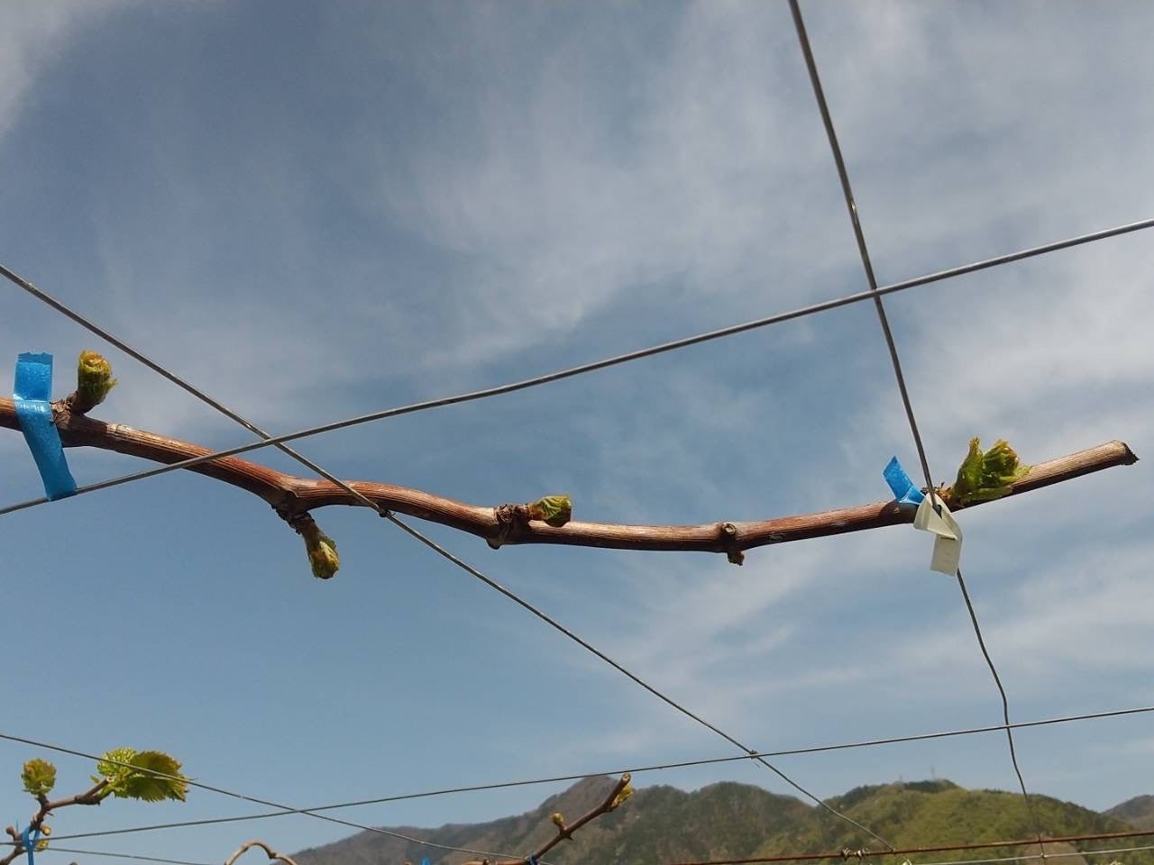 4月に入り少し早めの4月11日に萌芽をし、5月に入ると降水量が平年より少なく、日照時間は平年並みとなり、病気はほぼ確認されませんでした。開花は5月25日に確認、萌芽が少し早かったですが、生育スピードは例年並みに落ち着きました。この時期は、新梢の誘引、芽かき作業を行います。