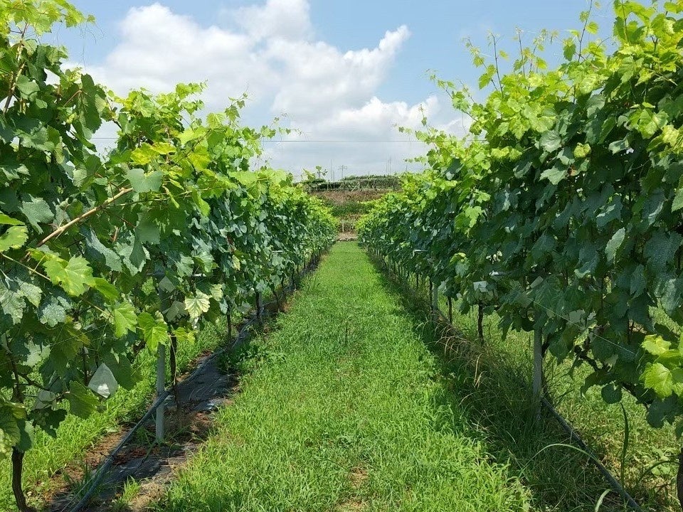 6月は雨が少なく、空梅雨の年になりました。ぶどうの果粒肥大に影響する6月7月の降雨が少なかったため、果粒は小粒の傾向になり、健全なまま生育が進みました。8月に入り長雨があり、多少のベト病の発生、裂果が確認されました。ヴェレゾン期(硬核期)までに摘房、除葉を行い、密着果房の品種には摘粒を行いました。ピラジンが多く生成される品種には積極的な除葉を行い、青臭さ(ピーマン臭)を減らすよう管理を徹底しました。