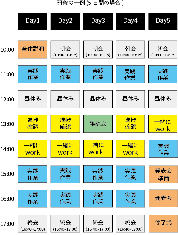 ■研修の一例(5日間の場合)
