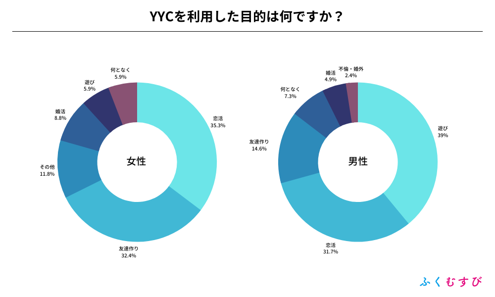 ・男性がYYCを利用した目的は、遊びが1位、恋活が2位となりました。
