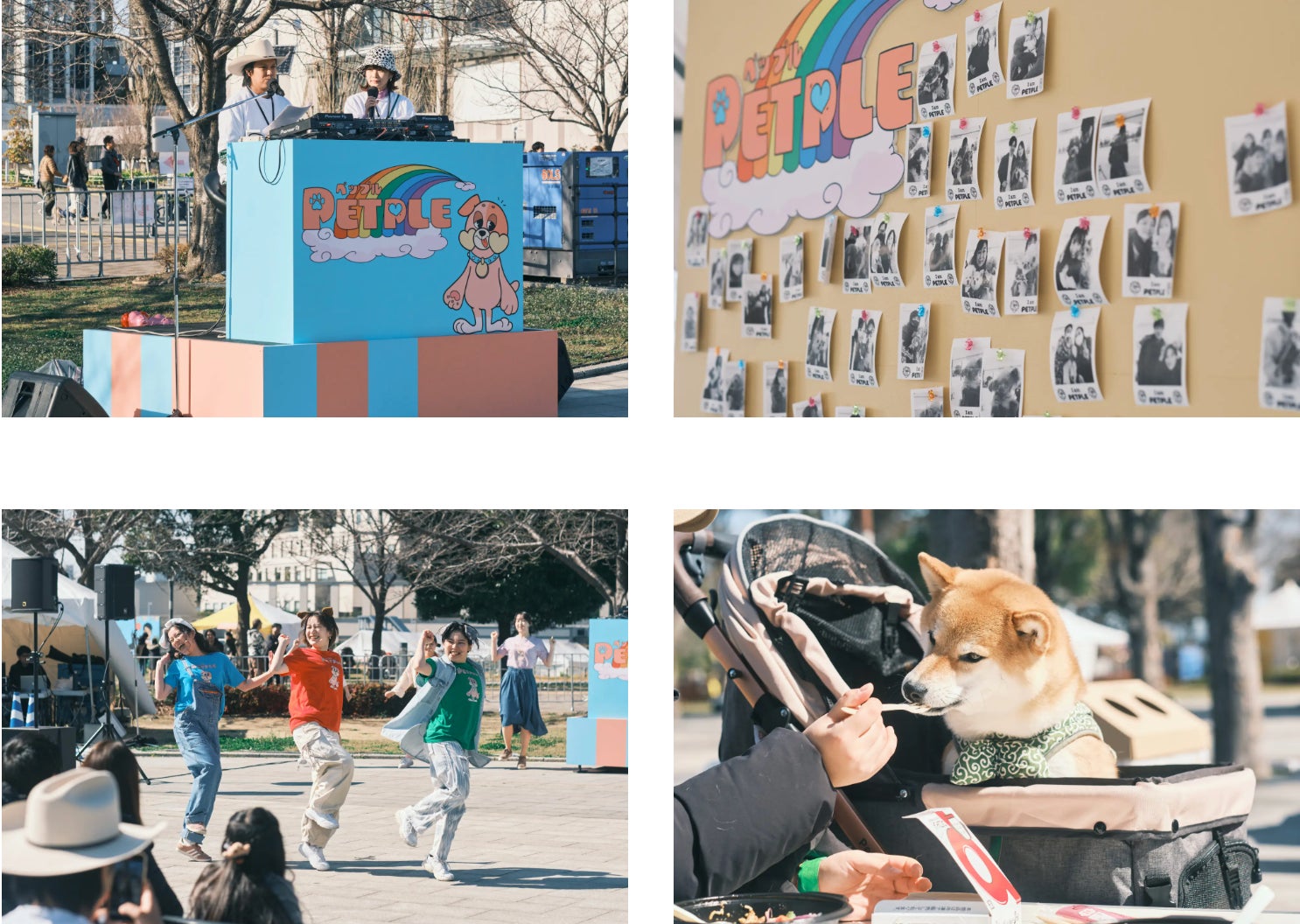 イベント当日はスタートと同時にたくさんのPETPLE(ヒトとイヌ)が集結し、2日間で3万人以上ご来場いただきました。PETPLE MARCHEでは、80店舗以上のブランドのブースを設置し、買い物をお楽しみいただきました。また、PETPLE RUNでは、2日間共に多くのワンちゃんにご利用いただきました。PETPLE限定フォトブースで撮影することで思い出を残したり、犬種別のオフ会で愛犬家同士の交流を図ったりと、さまざまな角度からイベントをお楽しみいただきました。