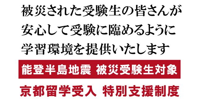 被災された受験生の皆さんが、安心して受験に臨めるように、京都で学習環境を提供いたします