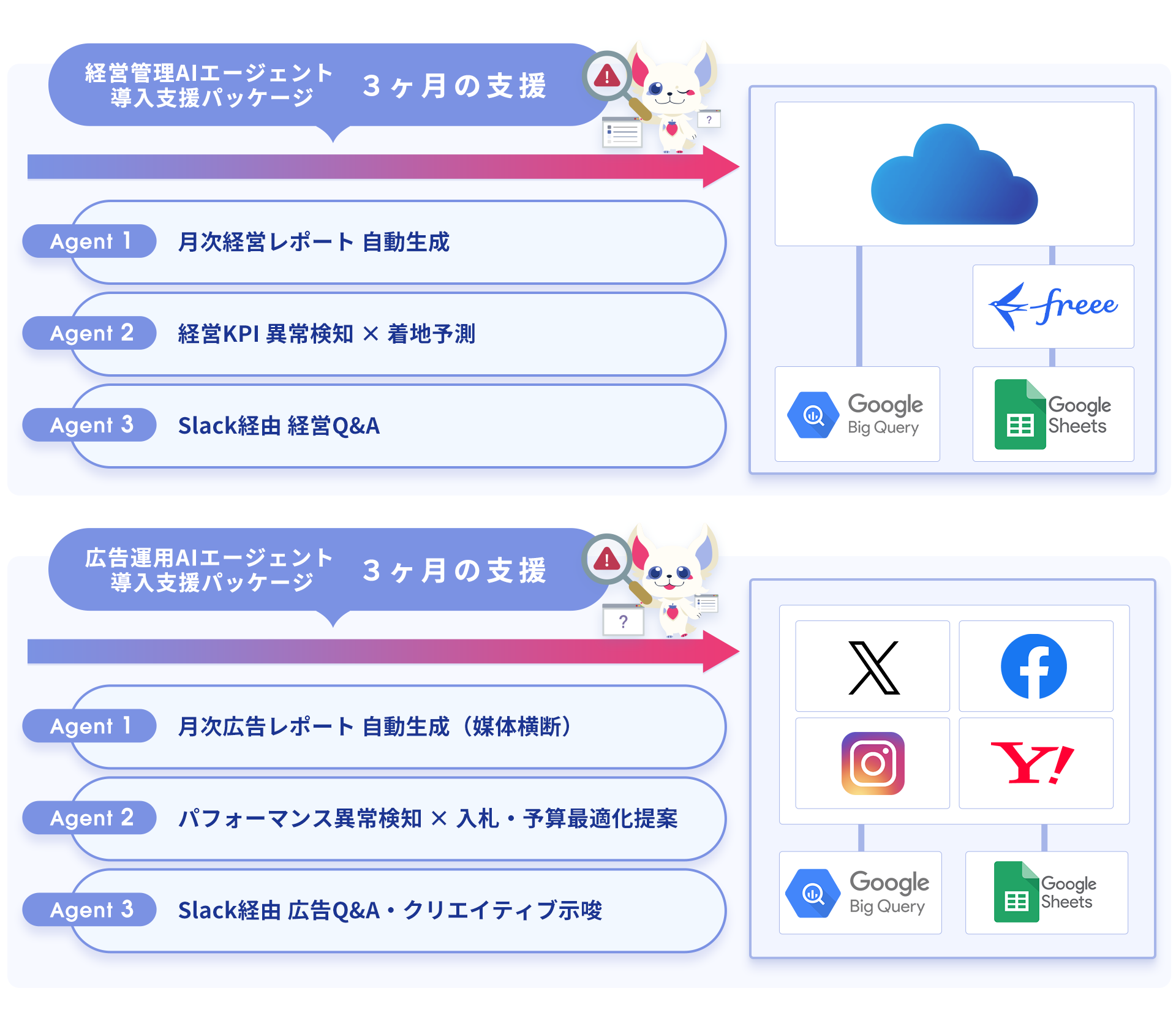 Point3 : 業務特化の導入支援パッケージ ── 「経営管理」「広告運用」をAIエージェント化、3ヶ月で立ち上げ