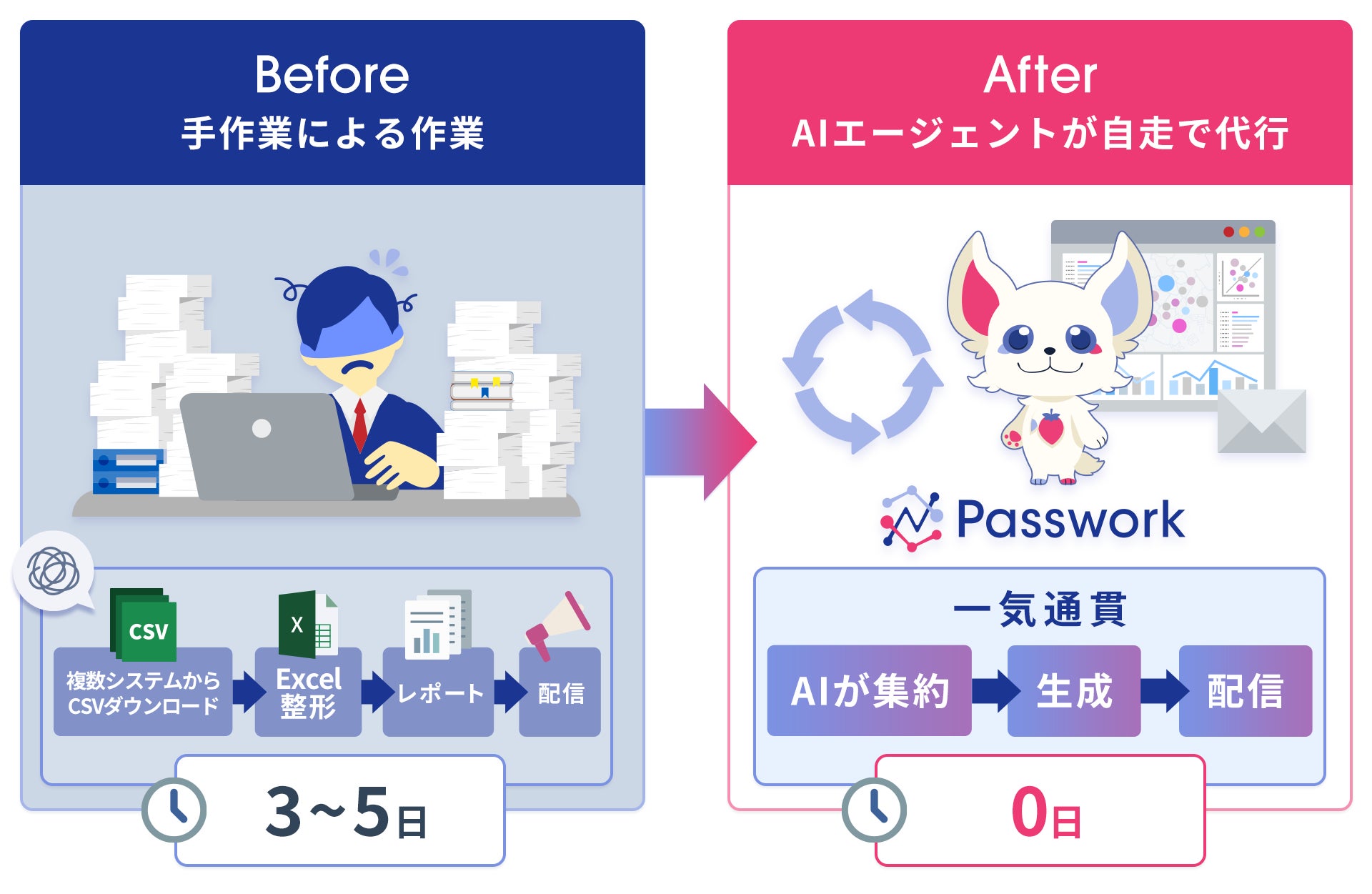 株式会社Prazto(本社:東京都中央区、代表取締役:芳賀 怜史)は、自社プロダクト「Passwork」において、業務をAIが自走で代行する 「AIエージェント機能」 を 2026年4月27日(月)に正式リリース いたします。あわせて、経営管理業務・広告運用業務をAIエージェント化する 「導入支援パッケージ」を同時提供開始 します。