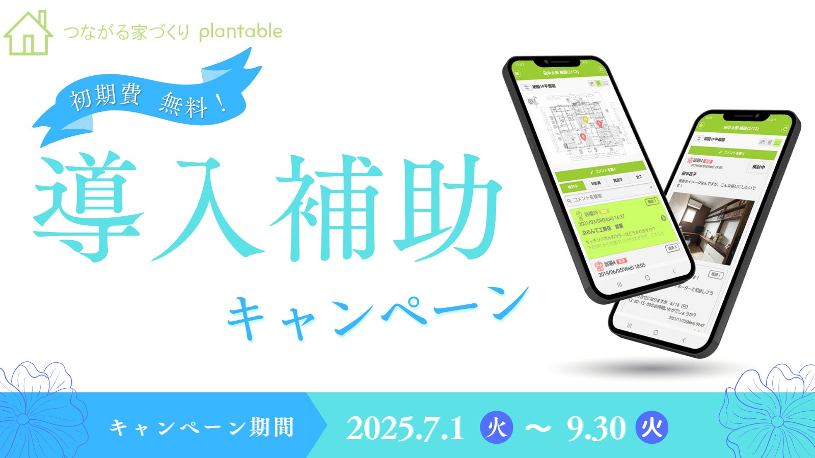工務店向けコミュニケーションアプリ「つながる家づくり‐plantable‐」を運営する株式会社エフ・ディー・シー(本社:東京都千代田区、代表取締役:和田崇紀)は、工務店のDX推進を支援するため2025年7月∼2025年9月末まで先着3社限定で、『つながる家づくりplantable』の初期費用、通常30万円を無料で提供することになりましたのでお知らせいたします。