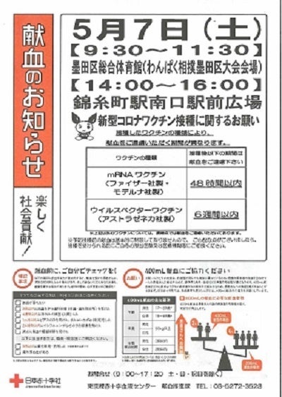 5月7日開催のわんぱく相撲墨田区大会で献血を行います