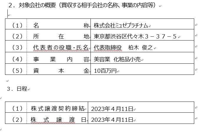 当社グループは2023年3月31日に持株会社体制に移行し、持株会社傘下に異業種も含めた事業体を配置しグループとしての相乗効果を発揮させることを企図しております。今回のミュゼプラチナム社の子会社化はその一環となるものであり、今後も技術・人材・企画力を有する有力企業の子会社化を積極的に進めて参ります。