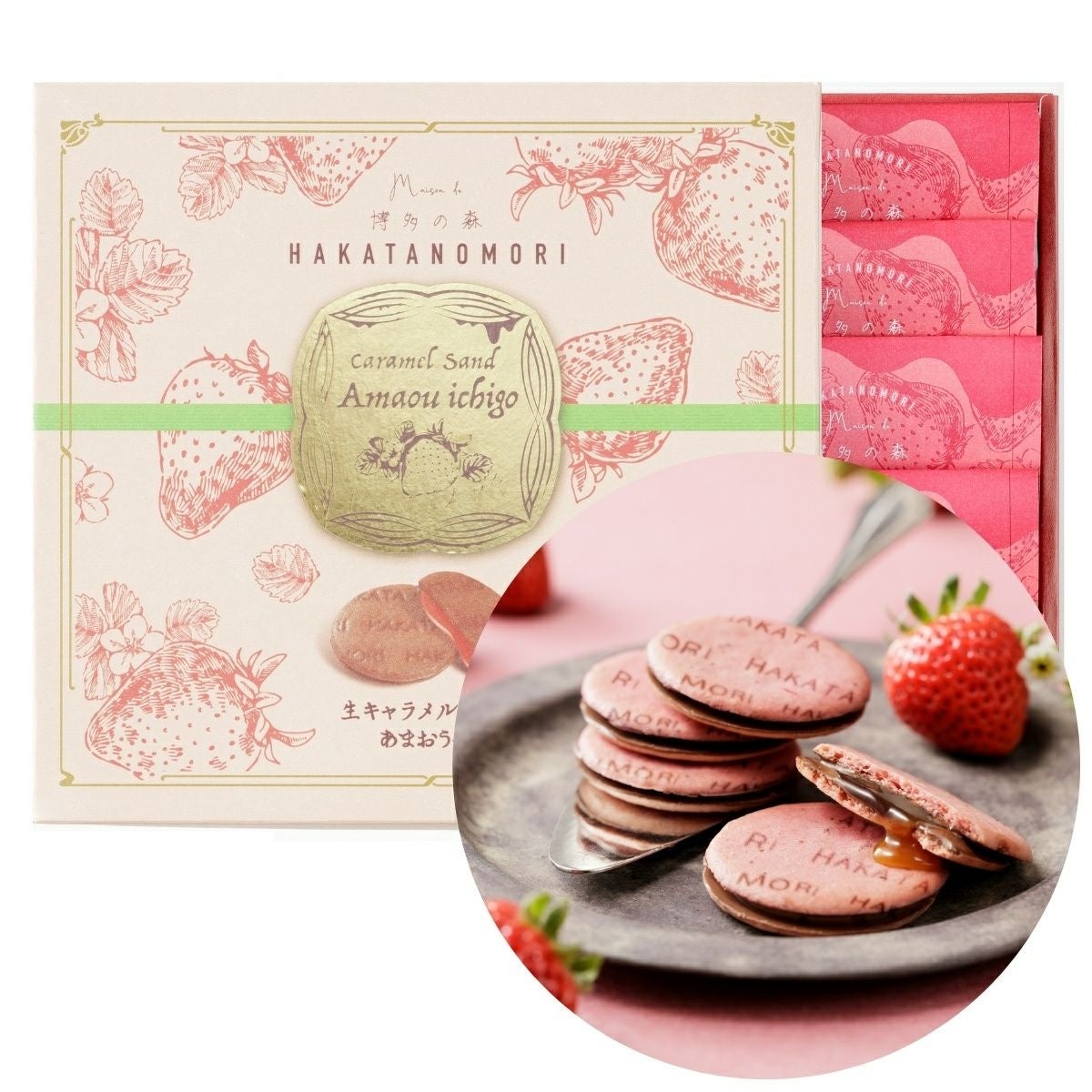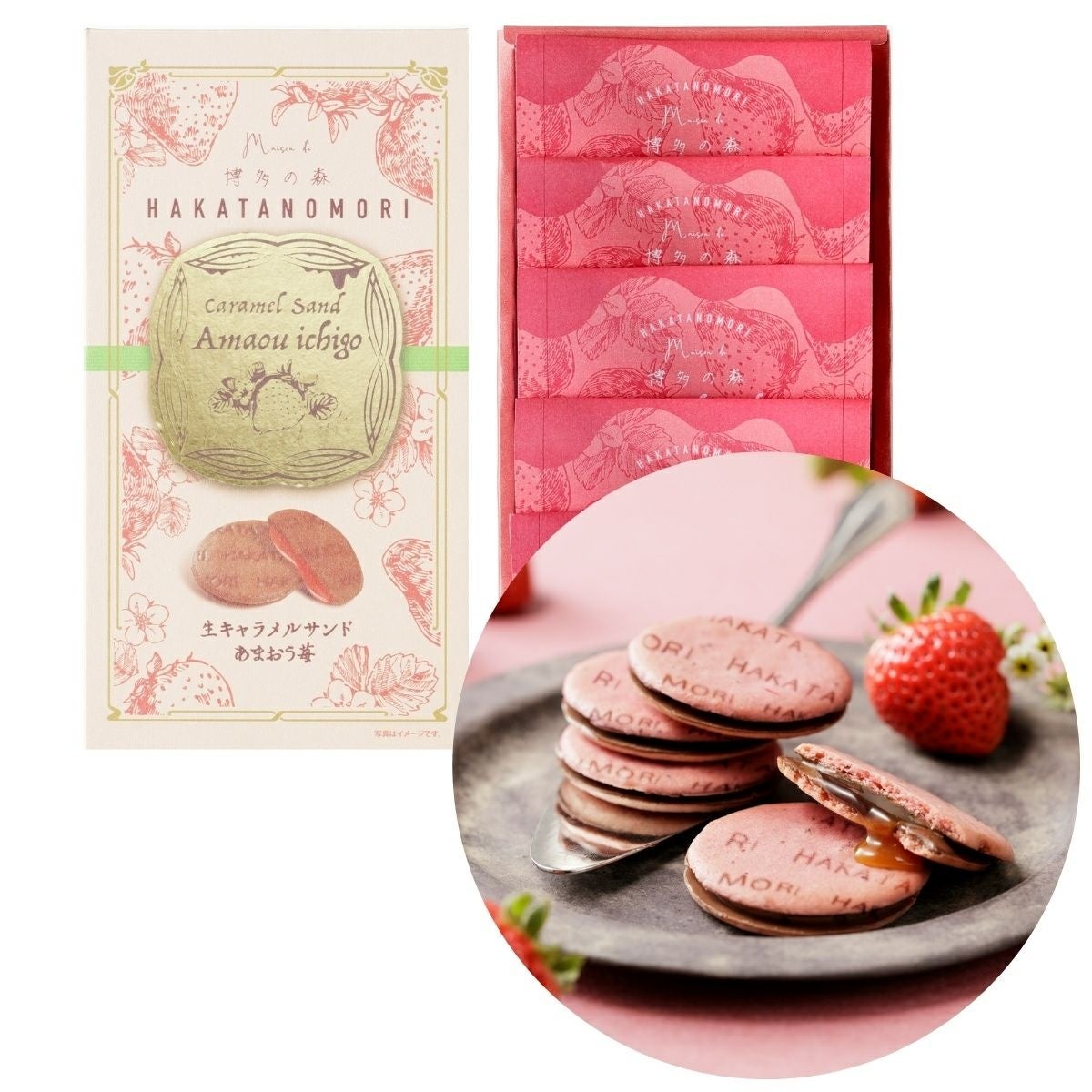 株式会社「明徳庵」は、福岡の名物、あまおう苺を使用した商品で、美味しさ抜群の新商品である「博多の森 生キャラメルサンドあまおう苺」の販売を開始しました。