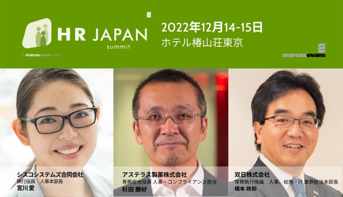 シスコシステムズ 宮川氏、双日 橋本氏、アステラス製薬 杉田氏が登壇!『HR Japan Summit 2022』@ホテル椿山荘東京