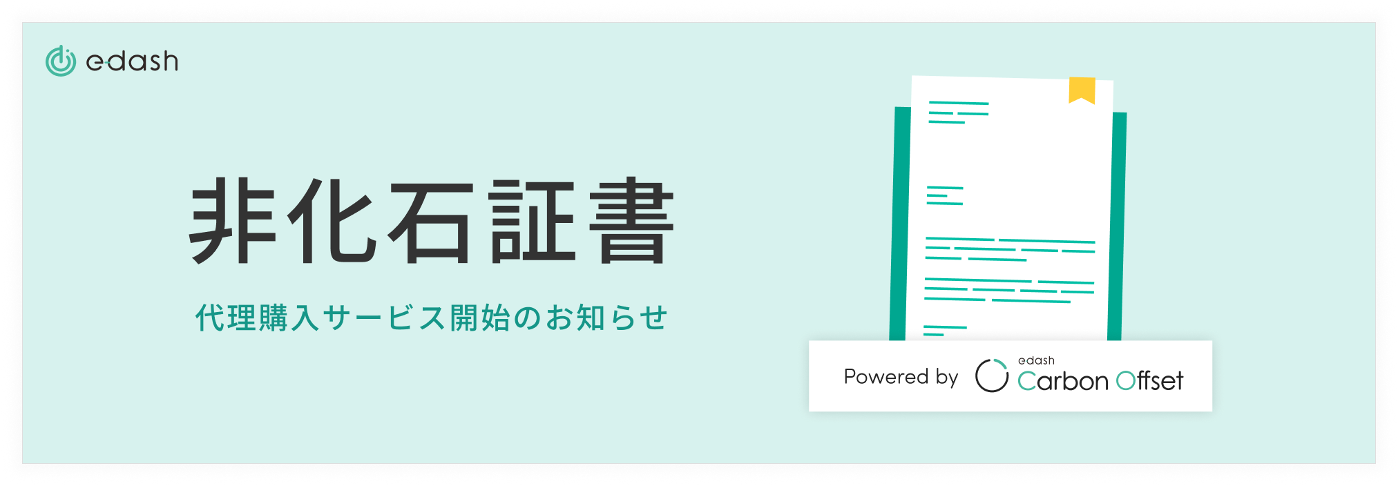 CO2排出量可視化のクラウドサービス「e-dash」を提供するe-dash株式会社(本社:東京都千代田区、代表取締役社長 山崎冬馬)は、先般リリースした「e-dash Carbon Offset」の新たなサービスとして、非化石証書の代理購入サービスを開始いたします。
