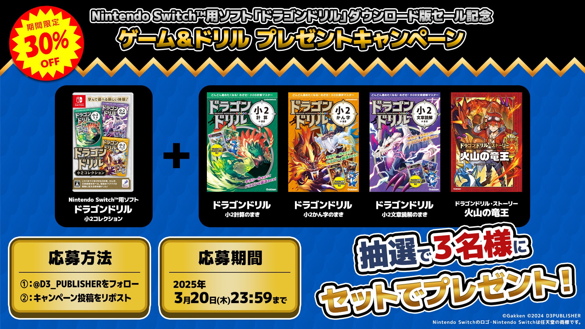 『ドラゴンドリル 小1コレクション』『ドラゴンドリル 小2コレクション』30%OFFセールスタート!Xプレゼントキャンペーン実施中!