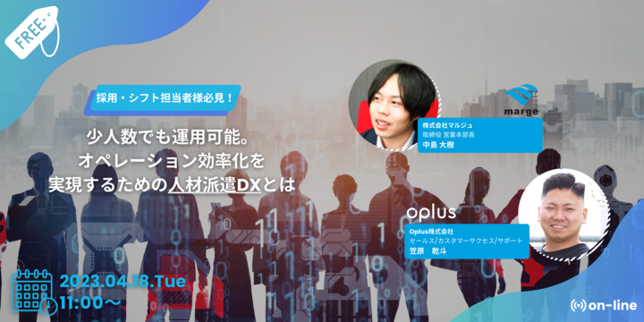 4月18日(火)11時開催!マルジュ×oplusが人材派遣業界向けの共催ウェビナーを開催!『少人数でも運用可能。オペレーション効率化を実現するための人材派遣DXとは』