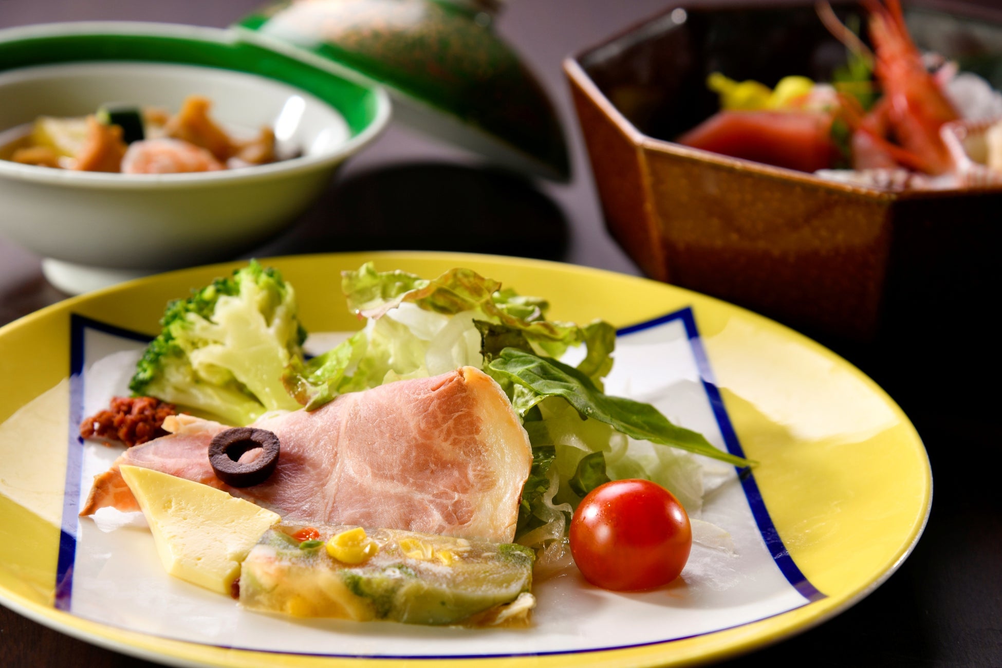 花もみじ11F Premire Floor『urara』宿泊者限定の特別会席。前菜からデザートまで、こだわり抜いた食材と調理法が、夏夜を彩ります。