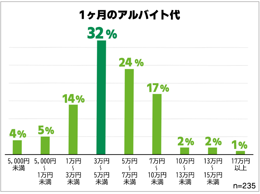 今回のアンケートでは学生男女235人にお金の使い道やアルバイトの収入、仕送り額などについて聞きました。