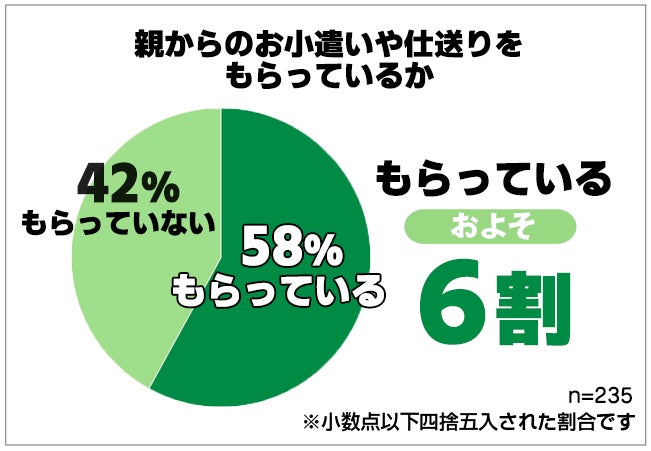 完全にアルバイトだけでやりくりしている学生もいると思いますが、アルバイトをしながら足りない分をお小遣いとしてもらう、または仕送りでは足りない分をアルバイトで補う、という人も一定数いるようです。