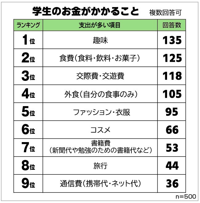 学生男女235人に聞いた!お小遣い・アルバイト事情&お金がかかることランキング