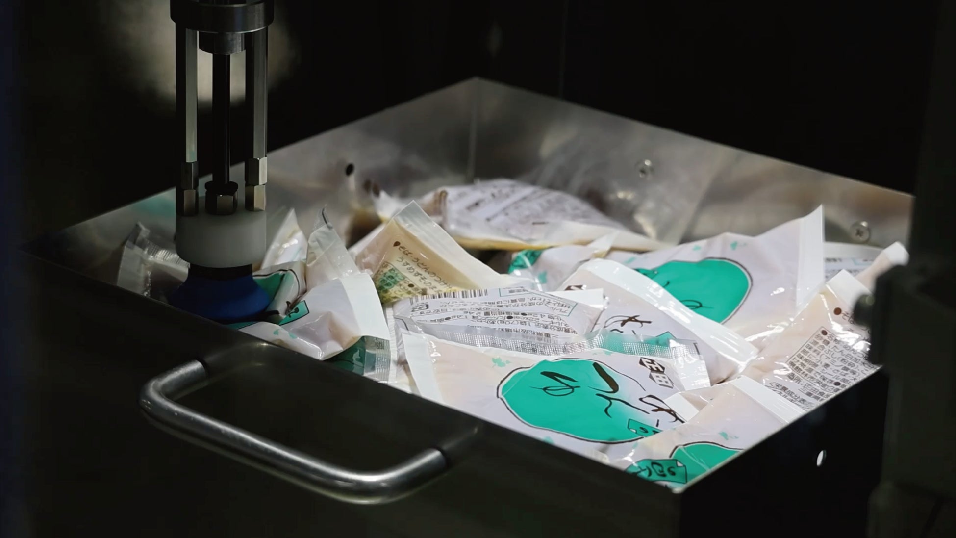 クローサーはこれらを両立させた、業界最速*(常時1200食/時間)の不定形物バラ積みピッキングを実現しました。