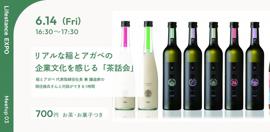 リアルな稲とアガベの企業文化を感じる 「茶話会」-稲とアガベ 代表取締役社長 兼 醸造家の岡住修兵と対話ができる1時間(Lifestance EXPO 茶話会)