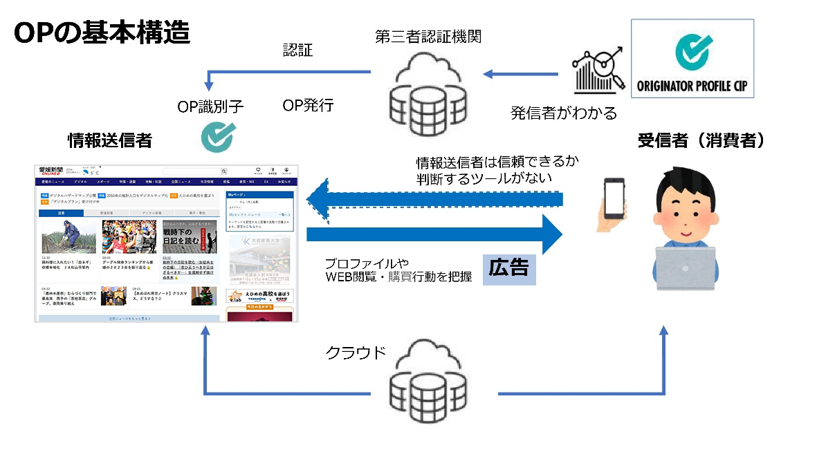 OPと名付けられたこの技術は、安全なインターネット環境を提供するための仕組みで、ブラウザなどで採用される「Web 標準」を目指しています。インターネット上のコンテンツ作成者、デジタル広告の出稿元などの情報を検証可能な形で付与する技術で、信頼できる発信者を識別可能にすることで第三者認証済みの良質なメディアとコンテンツをインターネット利用者が容易に見分けられる仕組みを確立し、フェイクニュースやアドフラウドなどの氾濫を抑止することにもつながります。