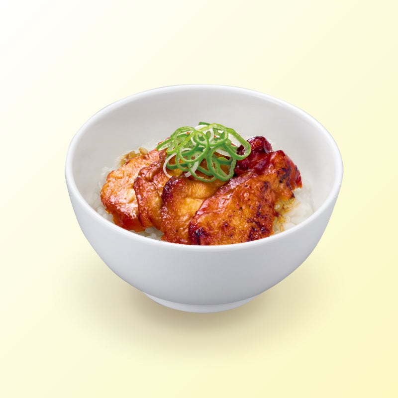 香ばしく焼き上げた鶏もも肉をご飯に乗せた、食欲をそそる一品。