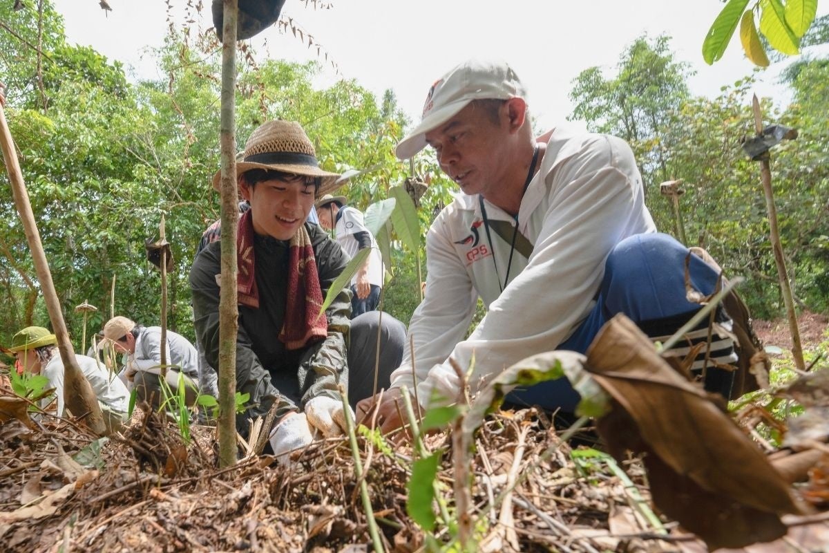 「オランウータンの森 再生プロジェクト」は、2024年2月に13人の学生ボランティアを第1陣として初めて派遣し、3月には第2陣として同じく13人を派遣、マレーシアとインドネシアの国境付近に位置するグヌン・アペン国立公園内で、在来樹木や果樹などを各隊2,500本ずつ、合計5,000本の植樹を行いました。