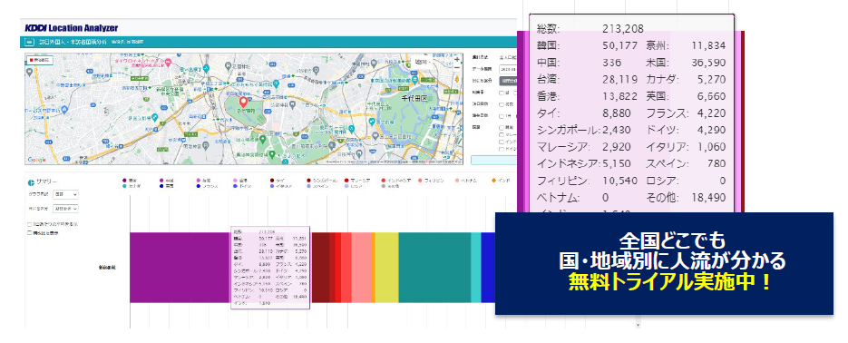 ・国内版とのセット契約で、国内日本人と訪日外国人の動態を同サービス内で確認でき、国内観光客と