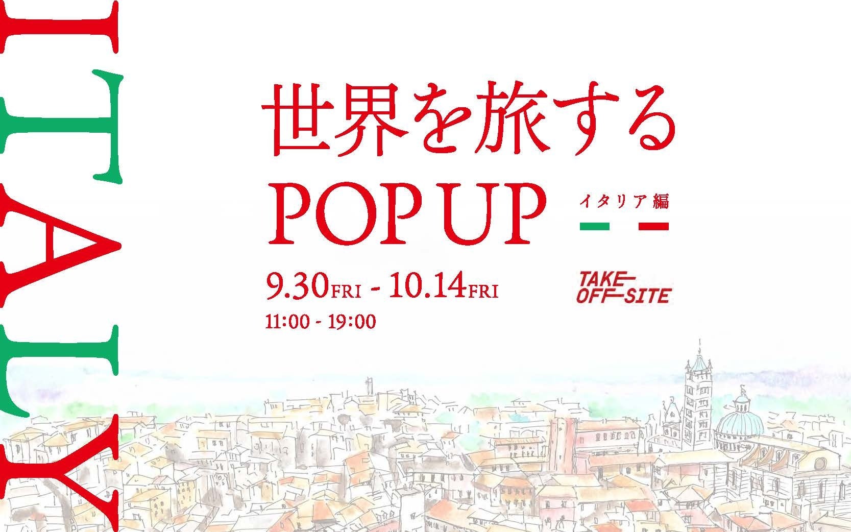 ㈱立飛ストラテジーラボ(本社:東京都立川市/代表取締役:村山正道)が運営する複合施設GREEN SPRINGS内のTAKEOFF-SITEにて、9月30日(金)~10月14日(金)「世界を旅するPOP UP~イタリア編~」が開催されます。
