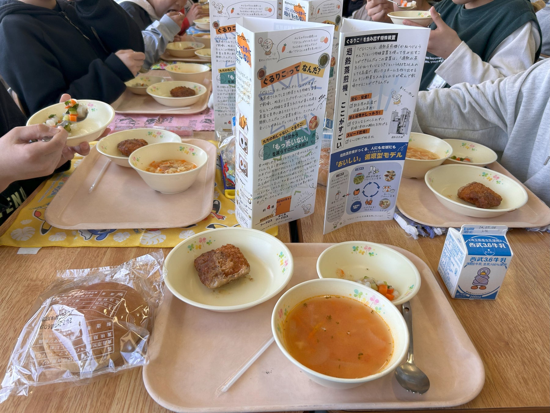 小学校では、規格外品のにんじんから作られた「ニンジンぐるりこ」を使用した「にんじんパン」と、食品工場で発生したごぼうの端材から作られた「ゴボウぐるりこ」をソースにした「白身魚のごぼうマヨソースかけ」が提供されました。子ども達からは、「にんじんが苦手でも食べられた」「ごぼうの味がしっかり感じられる」「ほかのぐるりこも食べたい」といった感想がありました。