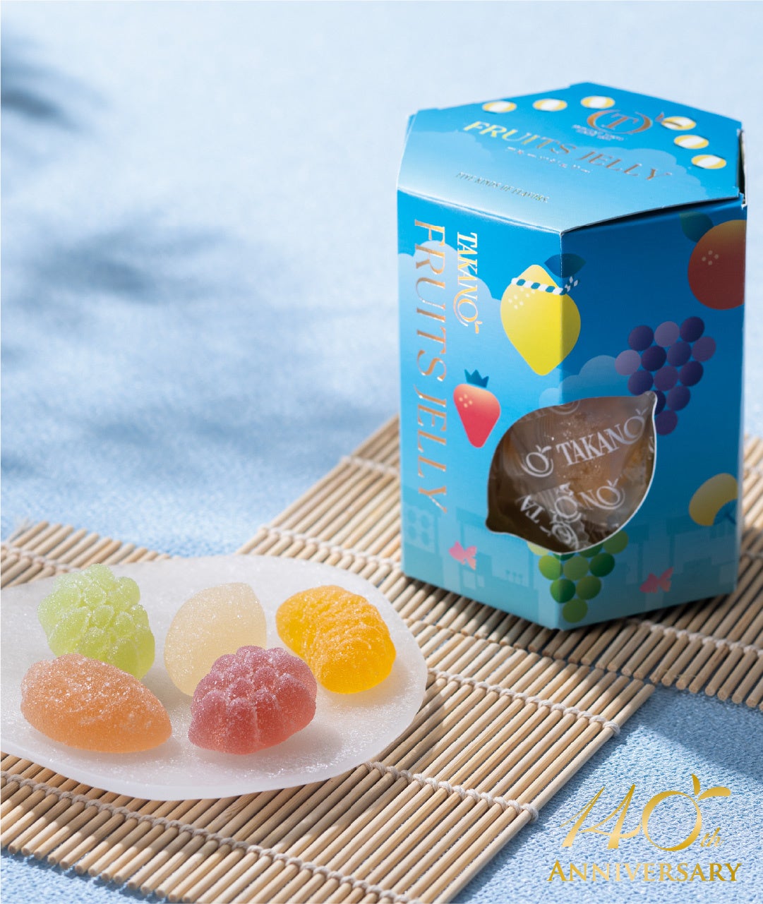 瀬戸内レモン、マスカット、温州みかん、とちおとめ、ぶどうの5種類の味が楽しめる、国産果汁とピューレで仕立てたフルーツをかたどった一口サイズのフルーツジェリーです。金魚や提灯など”祭”をイメージした今だけの限定パッケージをご用意いたします。
