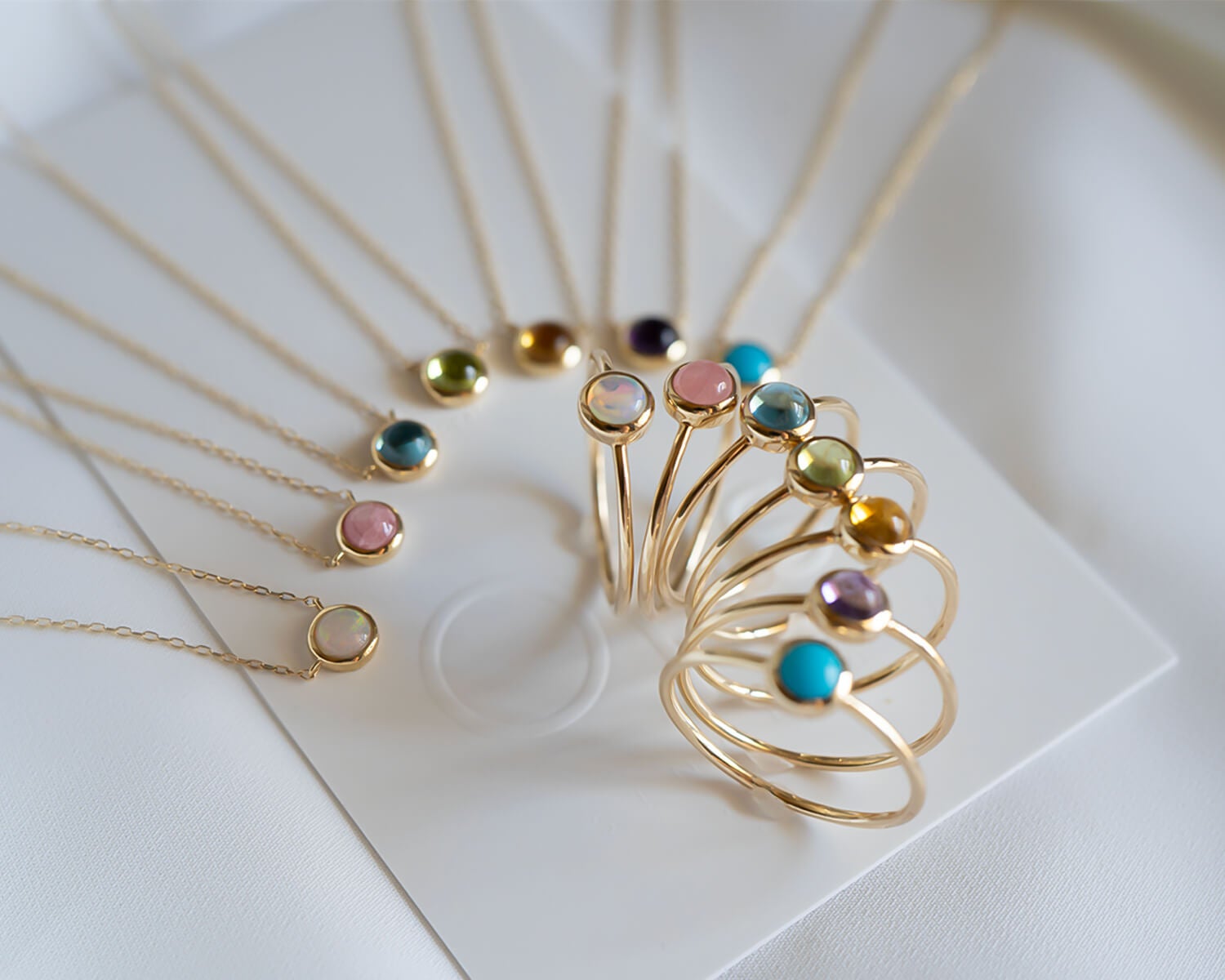 一粒天然石ジュエリー「 LUPAUS -ルパウ- 」は、オパールやペリドット、アメシストなどのカラーストーンを用いたリング・ネックレス。
