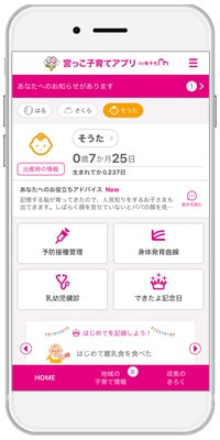 栃木県宇都宮市に採用された『宮っこ子育てアプリ』は、スマートフォン・タブレット端末・PCに対応したサービスで、妊産婦と子どもの健康データの記録・管理や予防接種のスケジュール管理、出産・育児に関するアドバイスの提供、離れた地域に住む祖父母など家族との共有機能や、市が配信する地域の情報をお知らせするなど、育児や仕事に忙しい母親や父親を助けてくれる便利な機能が充実しています。