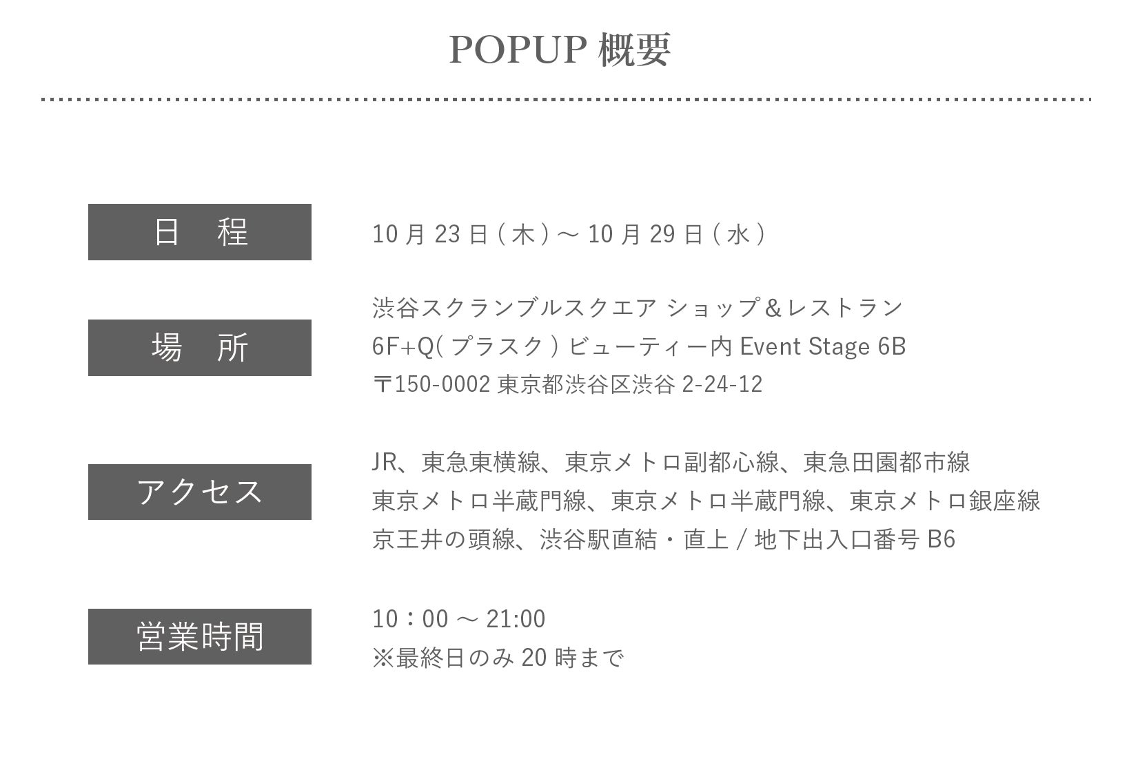 瞳の美しさを引き出す「国産ヴィーガンコスメ AINOKI」は、渋谷スクランブルスクエア 6F +Q (プラスク)ビューティーにてPOPUP SHOPを期間限定オープンいたします。
