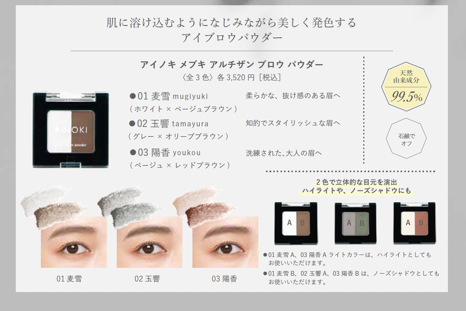 化粧品製造・販売をおこなうジャプロ株式会社( 東京本社:東京都中央区日本橋小舟町8-6 H10 日本橋小舟町606)が展開する国産ヴィーガン、ナチュラルオーガニックコスメブランド「AINOKI アイノキ」より、アルチザンブロウペンシル/ パウダーを新発売。10 月23 日( 木) から29 日( 水) まで渋谷スクランブルスクエア6F でPOPUP SHOPを開催いたします。