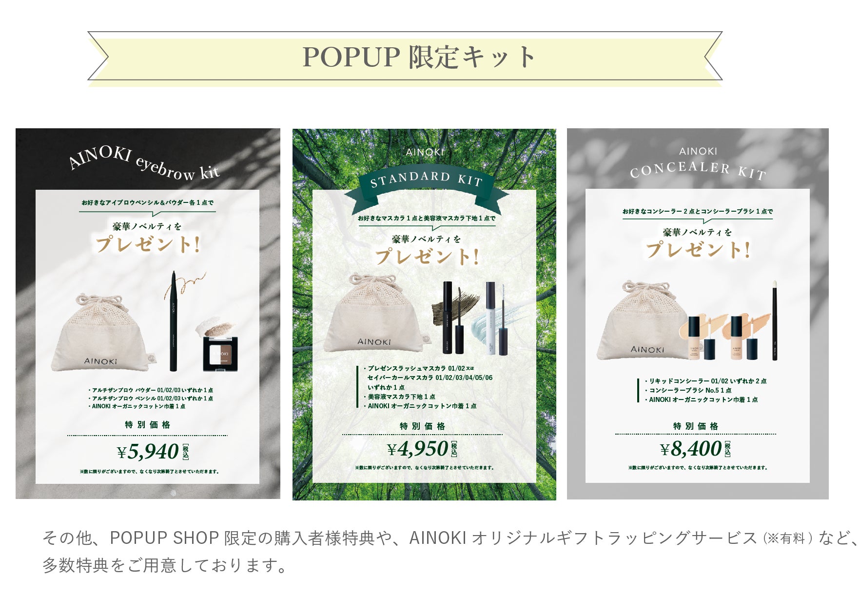新商品のアルチザンブロウペンシル/ パウダーをはじめとした全アイテムを店頭で販売いたします。POPUP SHOPのみで販売している商品や特別なキットもございます。是非直接お試しくださいませ。
