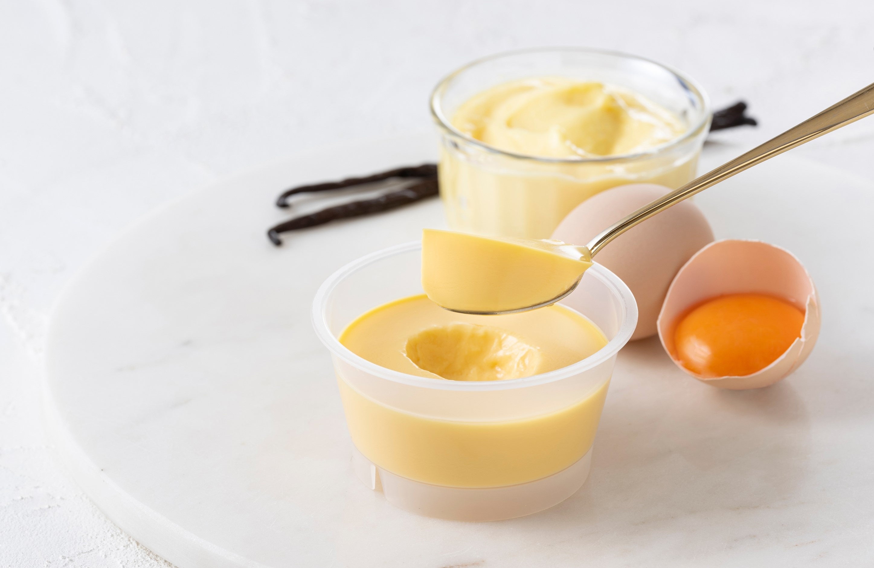 卵黄を贅沢に使用し、カスタード本来の濃厚でコク深いおいしさを引き出しました。さらに、モンレニオンバニラと生クリームをバランス良く合わせることで、カスタードに華やかさと深いコクを持たせています。誰もが慣れ親しんだ「カスタードクリーム」の味わいをお楽しみください。